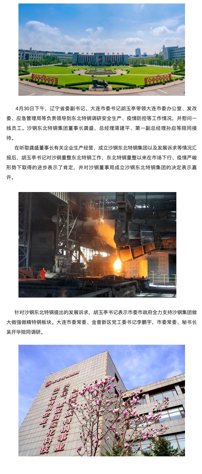 遼寧省委副書(shū)記、大連市委書(shū)記胡玉亭帶隊(duì)到東北特鋼視察調(diào)研